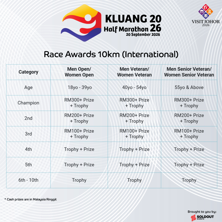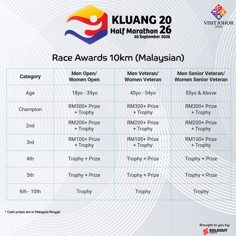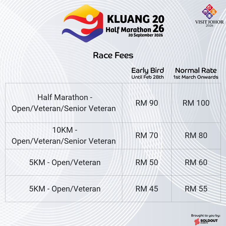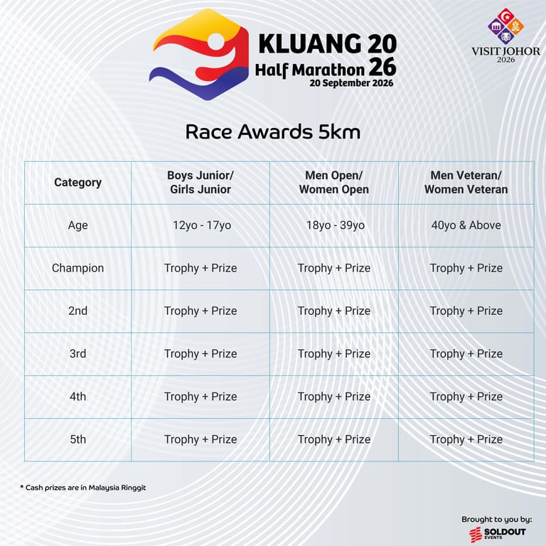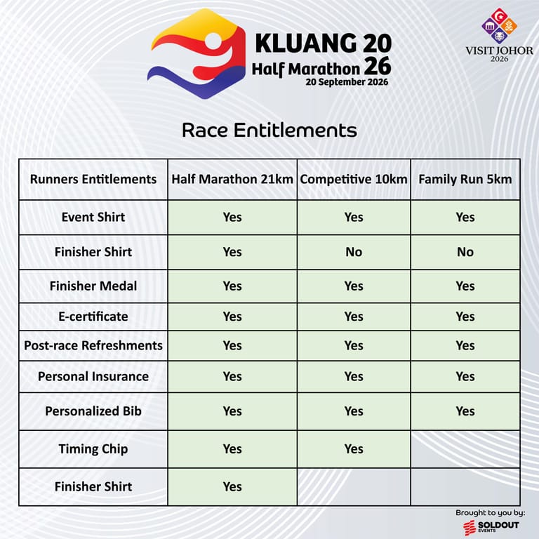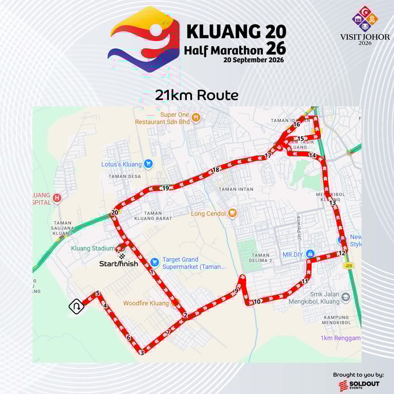 Join the excitement at the Kluang 2026 Half Marathon! Experience the thrill as you race through scenic Kluang with 21km, 10km, or 5km options. Perfect for both seasoned runners and beginners, this event offers professional organization, exclusive race packs, and memorable finisher medals. Secure your spot for an unforgettable running experience on 20 September 2026!